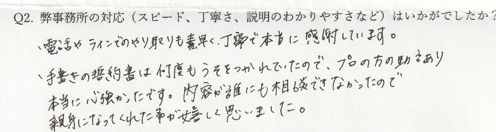 お客様からいただいた温かいお言葉は、弊事務所の誇りです。これからも温かいお言葉をいただけるよう誠実に対応いたします。