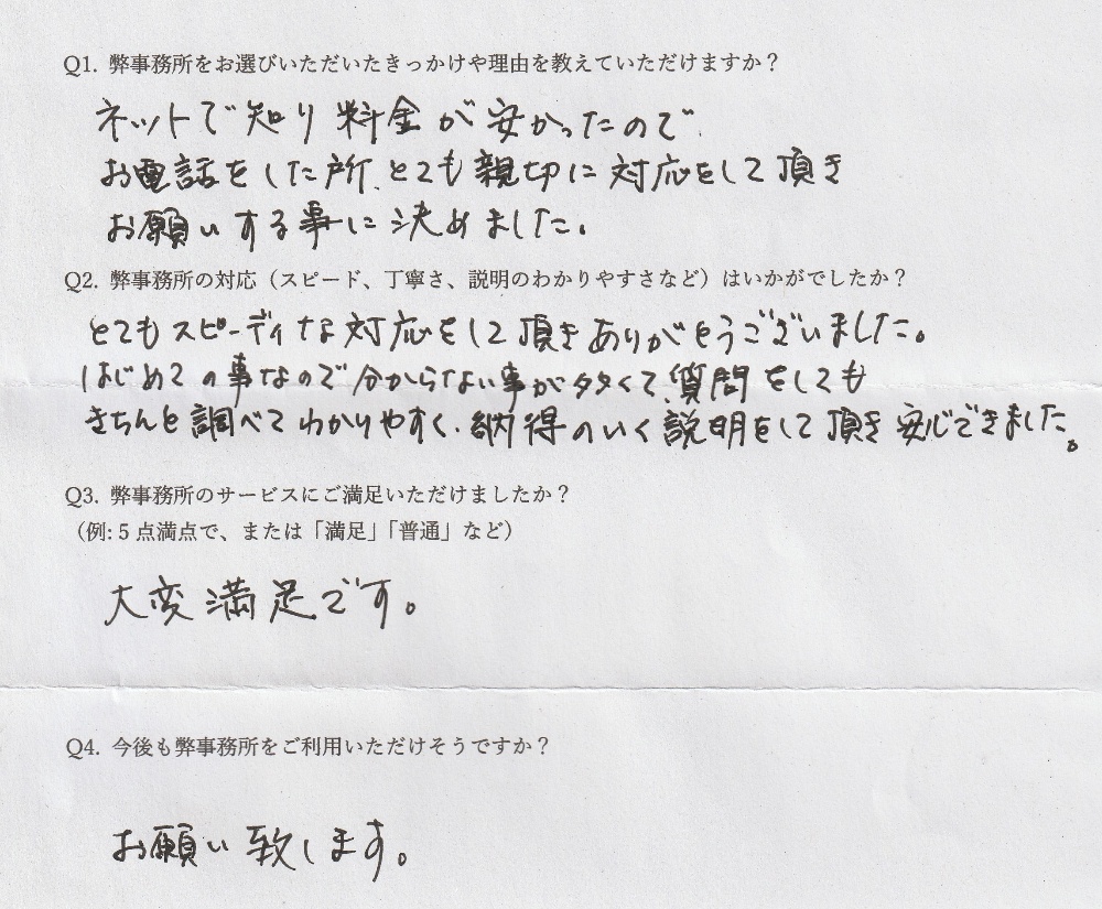 弊事務所の対応について、お客様からいただいた具体的なご感想をぜひご覧ください。